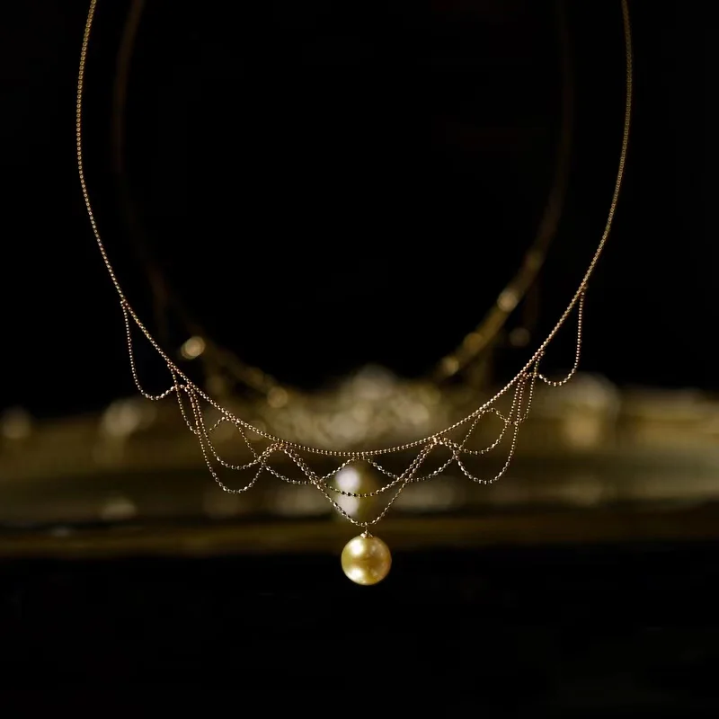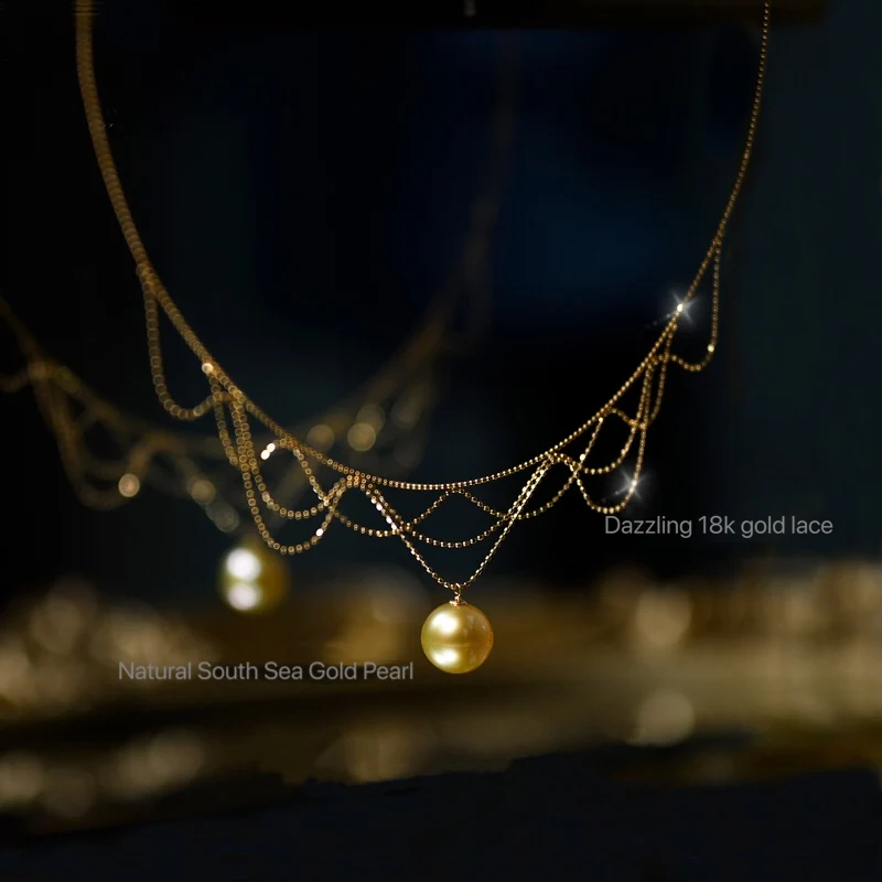 Special Offer 18 18kソリッドイエローゴールドジュエリー (AU750) 女性のレースのネックレスチョーカー襟チェーンナチュラル南洋真珠海水ファッション女性 Discount [NEW!!] Today!
