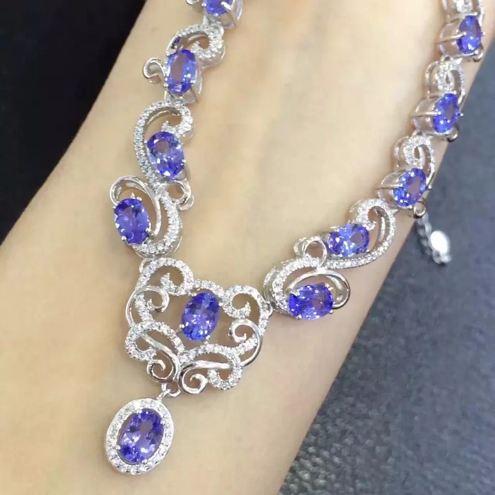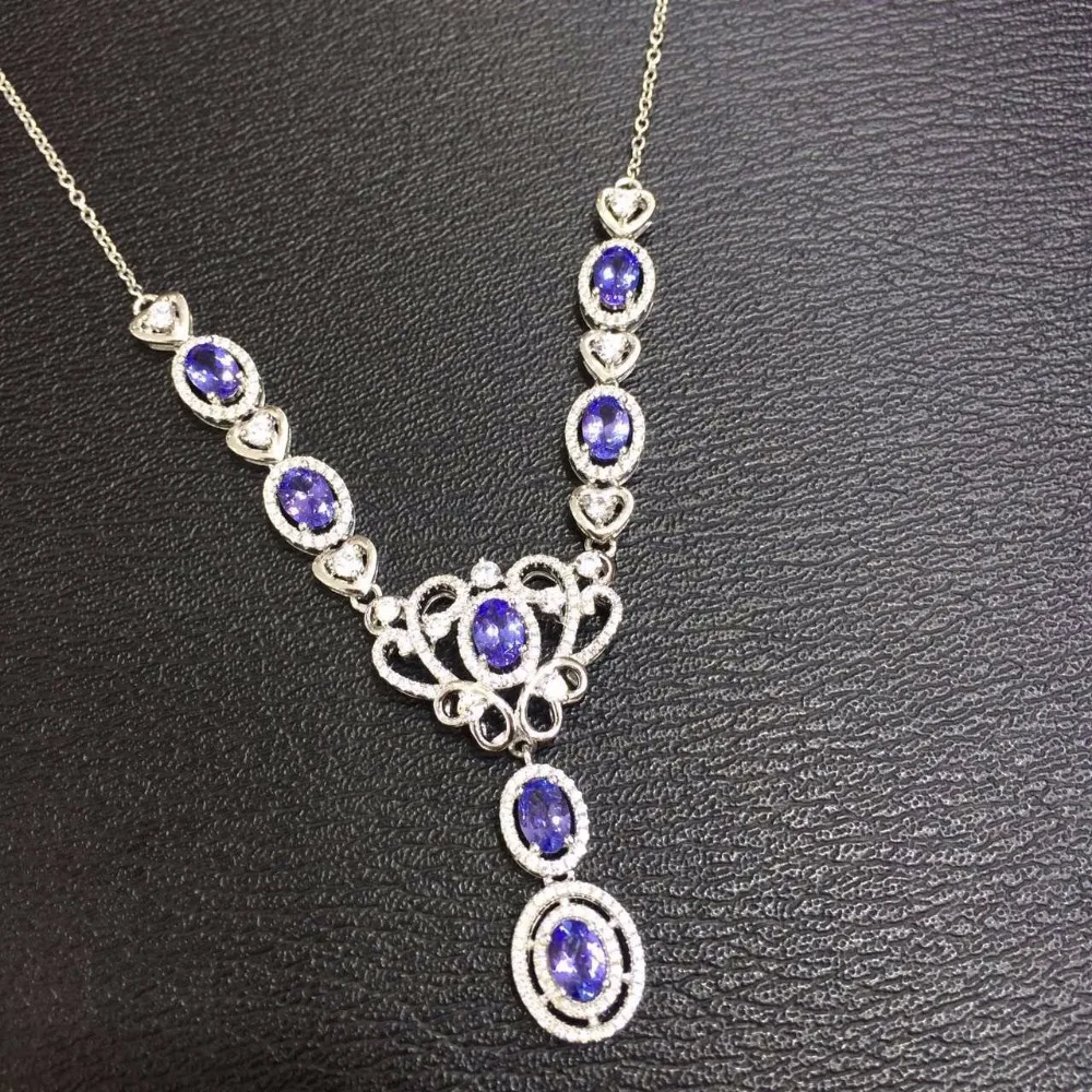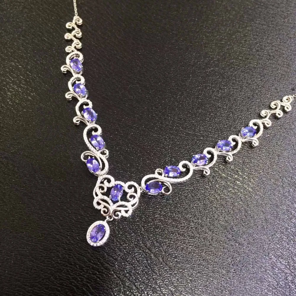 Special Offer テスト天然タンザナイトチョーカーネックレス女性、 4*6 ミリメートル * 12 個誕生石、 925 スターリングシルバーベルベットボックス証明書 FN189 Discount (13%OFF) Today!