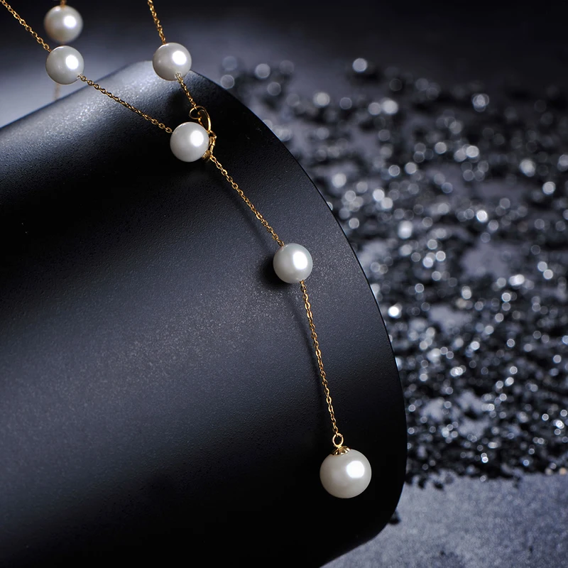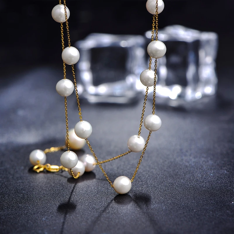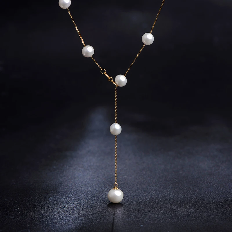 Special Offer Lnngy 100% 18 18kイエローゴールドチョーカーネックレス天然淡水真珠チェーンペンダント女性のための婚約ネックレスギフト Discount [NEW!!] Today!