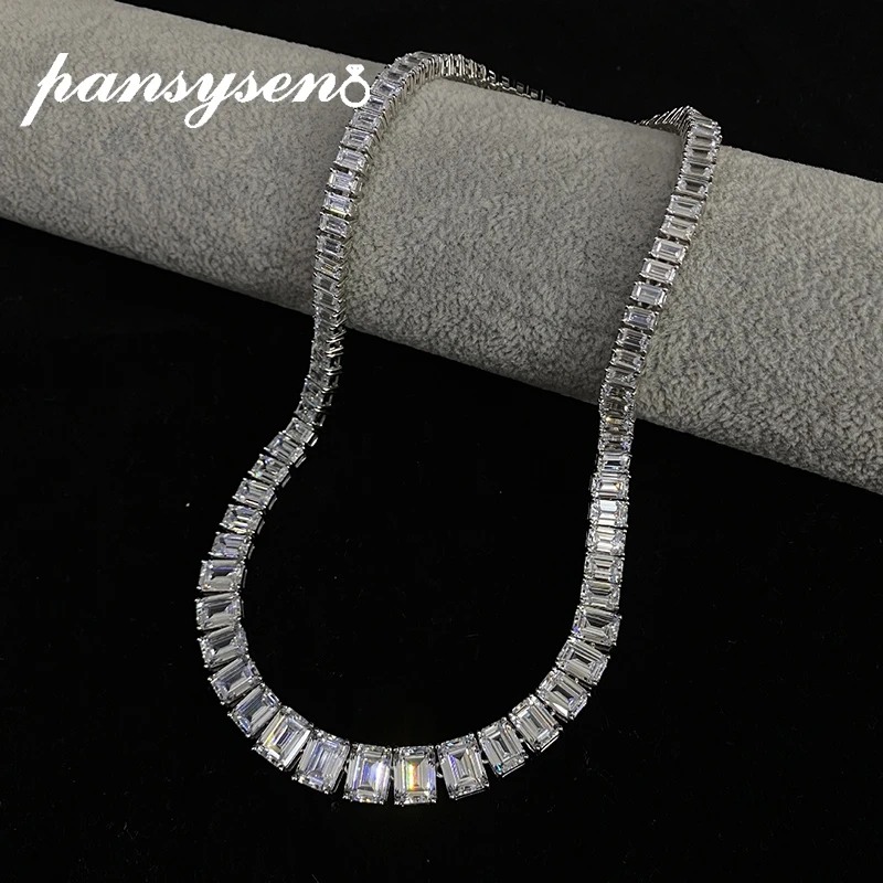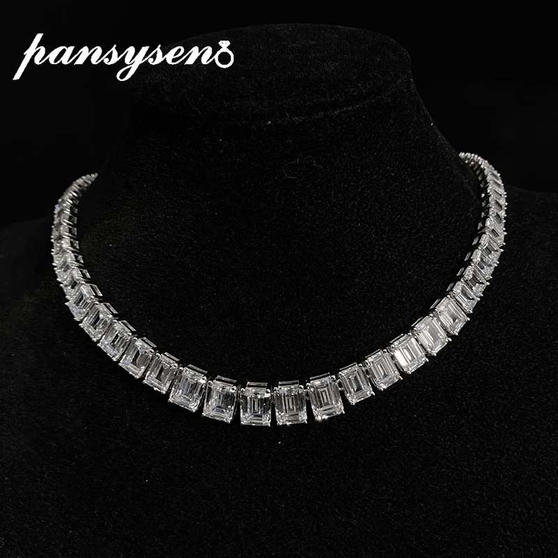 Special Offer Pansysen 100% 925スターリングシルバーエメラルドカット模擬モアッサナイト5Aジルコンチョーカーネックレス結婚式パーティーファインジュエリーギフト Discount [NEW!!] Today!