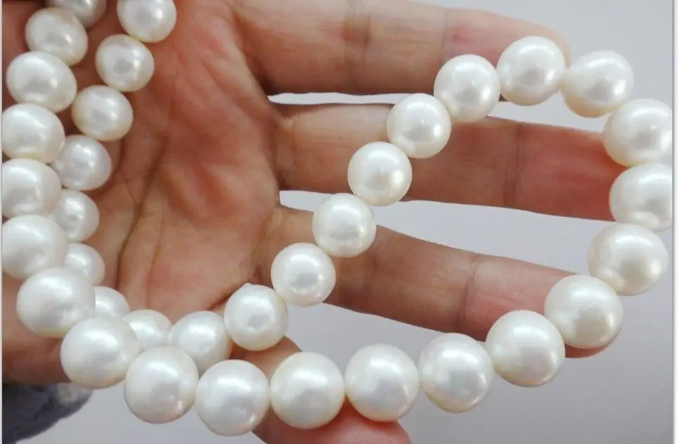 Special Offer 巨大な18 "12-15ミリメートル天然淡水本物のホワイトnear Round真珠のネックレス925シルバー Discount (25%OFF) Today!