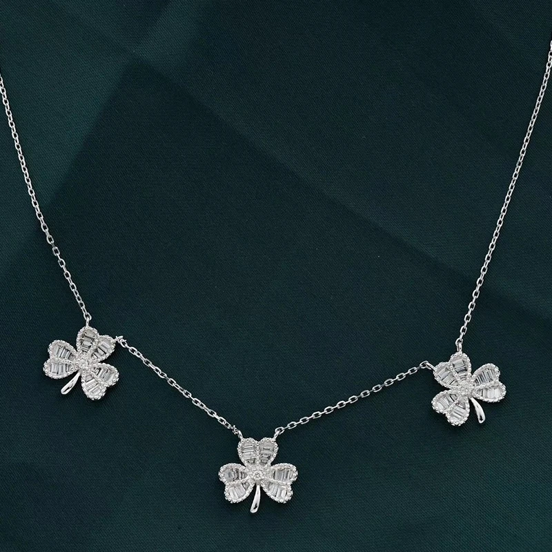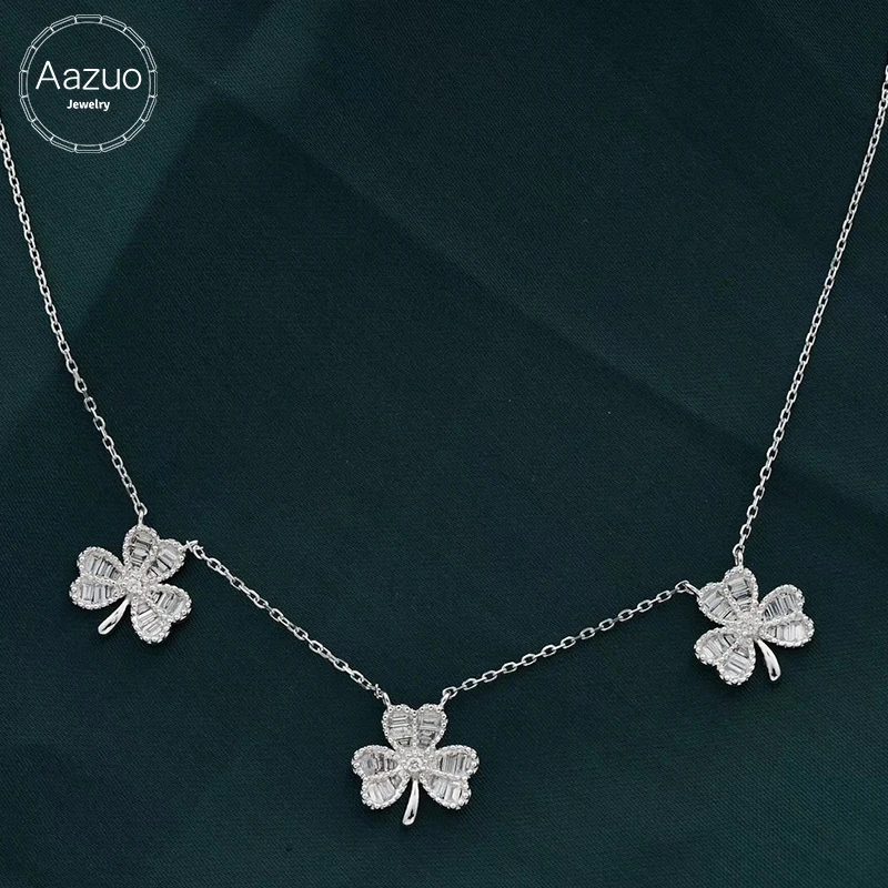 Special Offer Aazuo リアル 18 18k ホワイトゴールドリアル Bagutte ダイヤモンド妖精花葉チョーカーペンダントとチェーンネックレス才能女性のための 18 インチ Discount (25%OFF) Today!