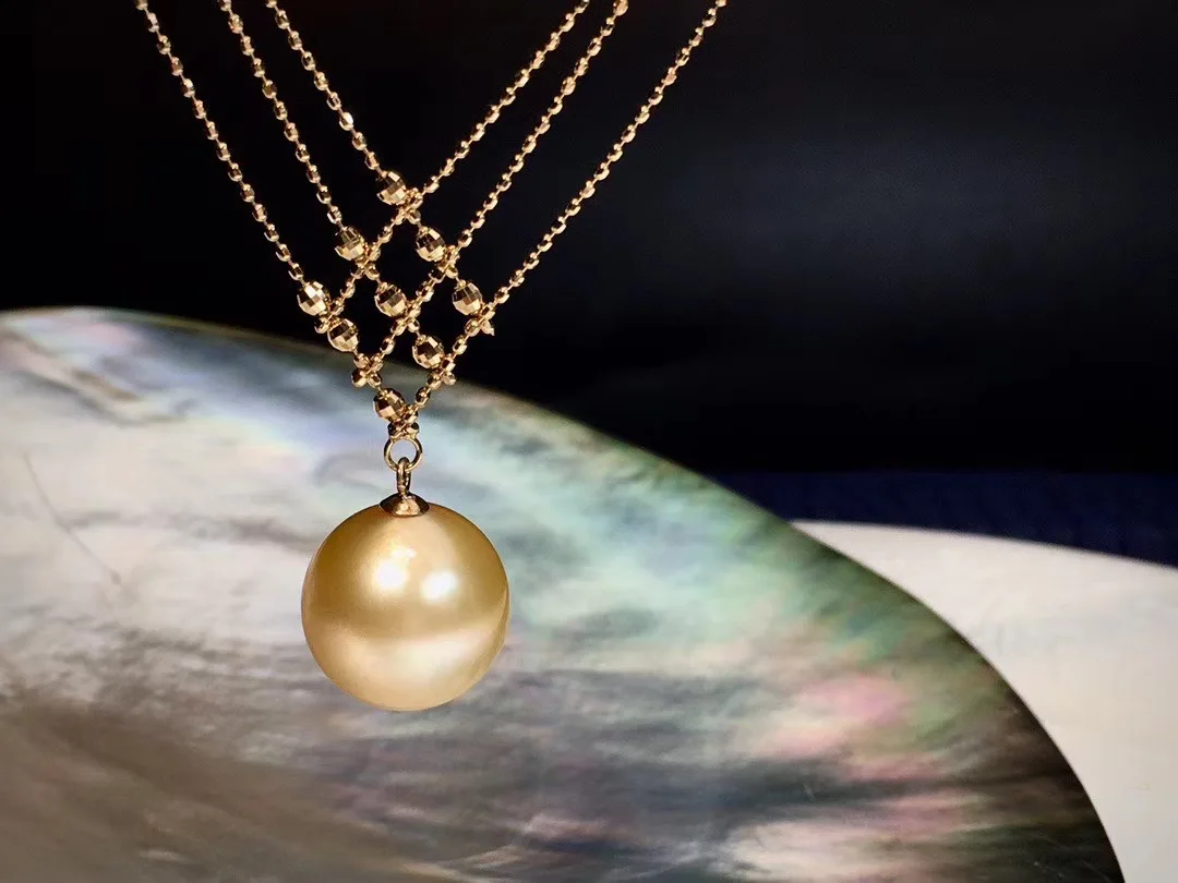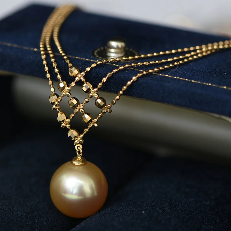 Special Offer 18 18kソリッドイエローリアルゴールドジュエリー (AU750) 女性のレースのネックレスチョーカーチェーン南洋パールビーズペンダントファッション女性 Discount (49%OFF) Today!