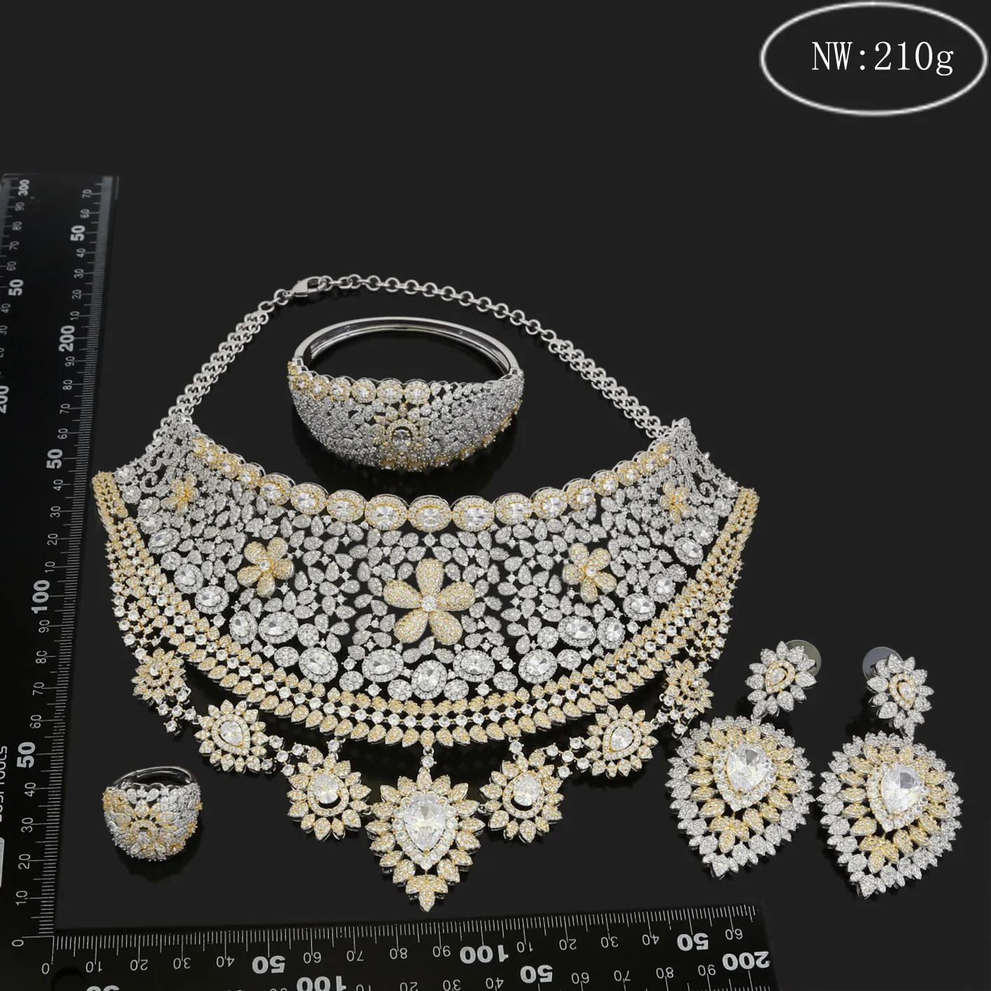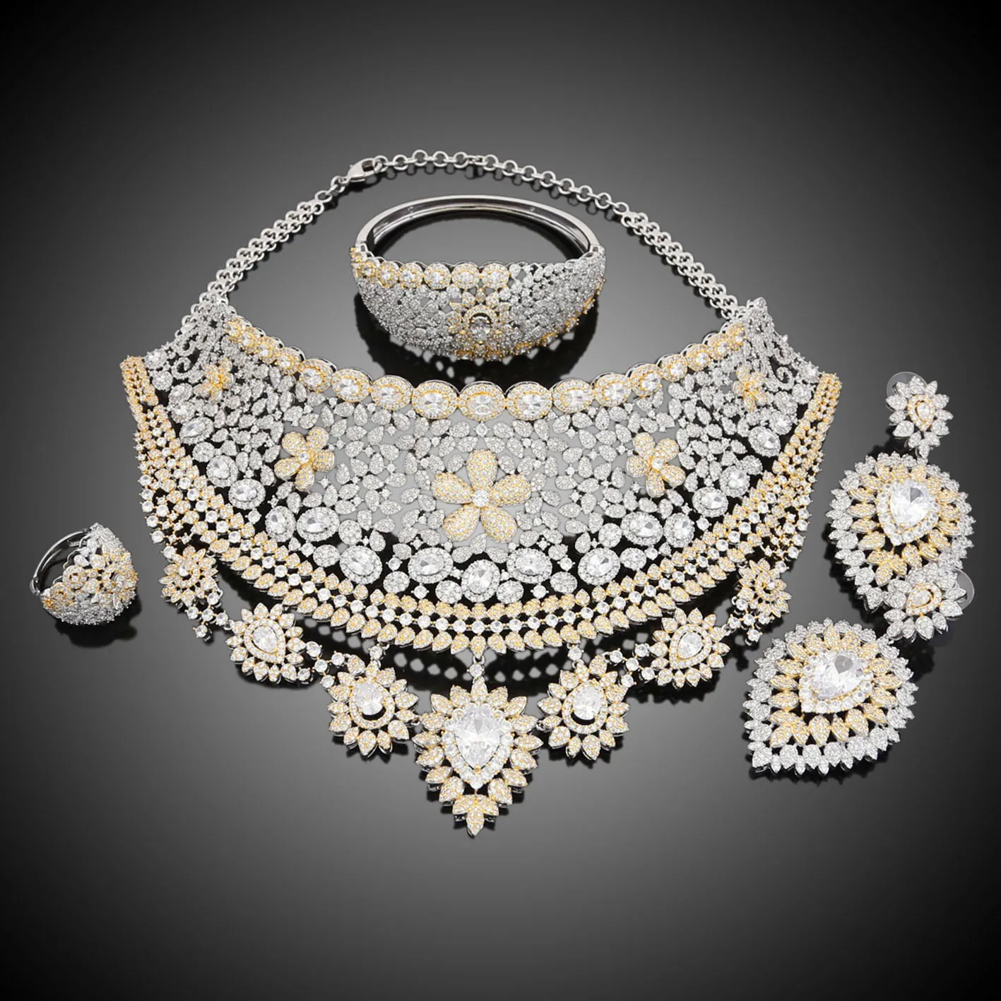 Special Offer Yulailiアメリカ天然ジルコン花チョーカーネックレスブラブライヤリングチャームバングルリング高級ウェディングブライダルジュエリーセット Discount (49%OFF) Today!