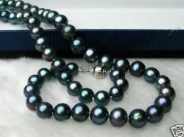 Special Offer 9-10 ミリメートルタヒチ黒緑本物のラウンド真珠のネックレス 14 18k/20 Discount (50%OFF) Today!
