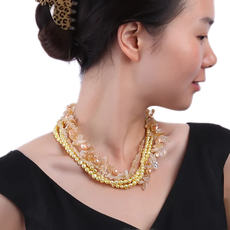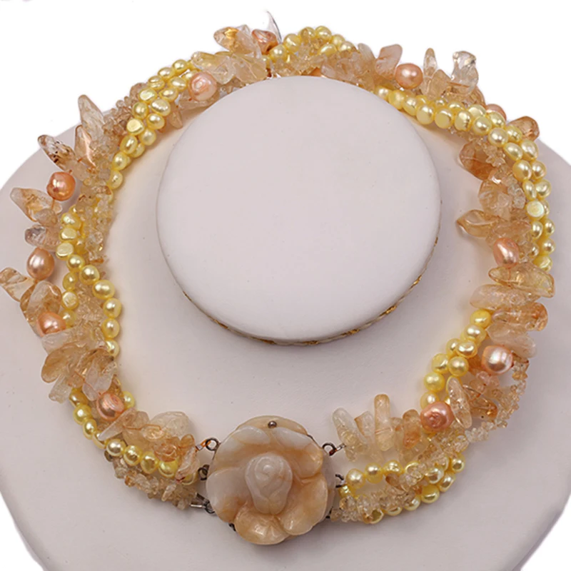 Special Offer JYX クラシックスタイルヒスイの花のネックレス 5 ストランド 6-7 ミリメートル淡水真珠シトリンとヒスイ 18.5" 女性 Discount [NEW!!] Today!