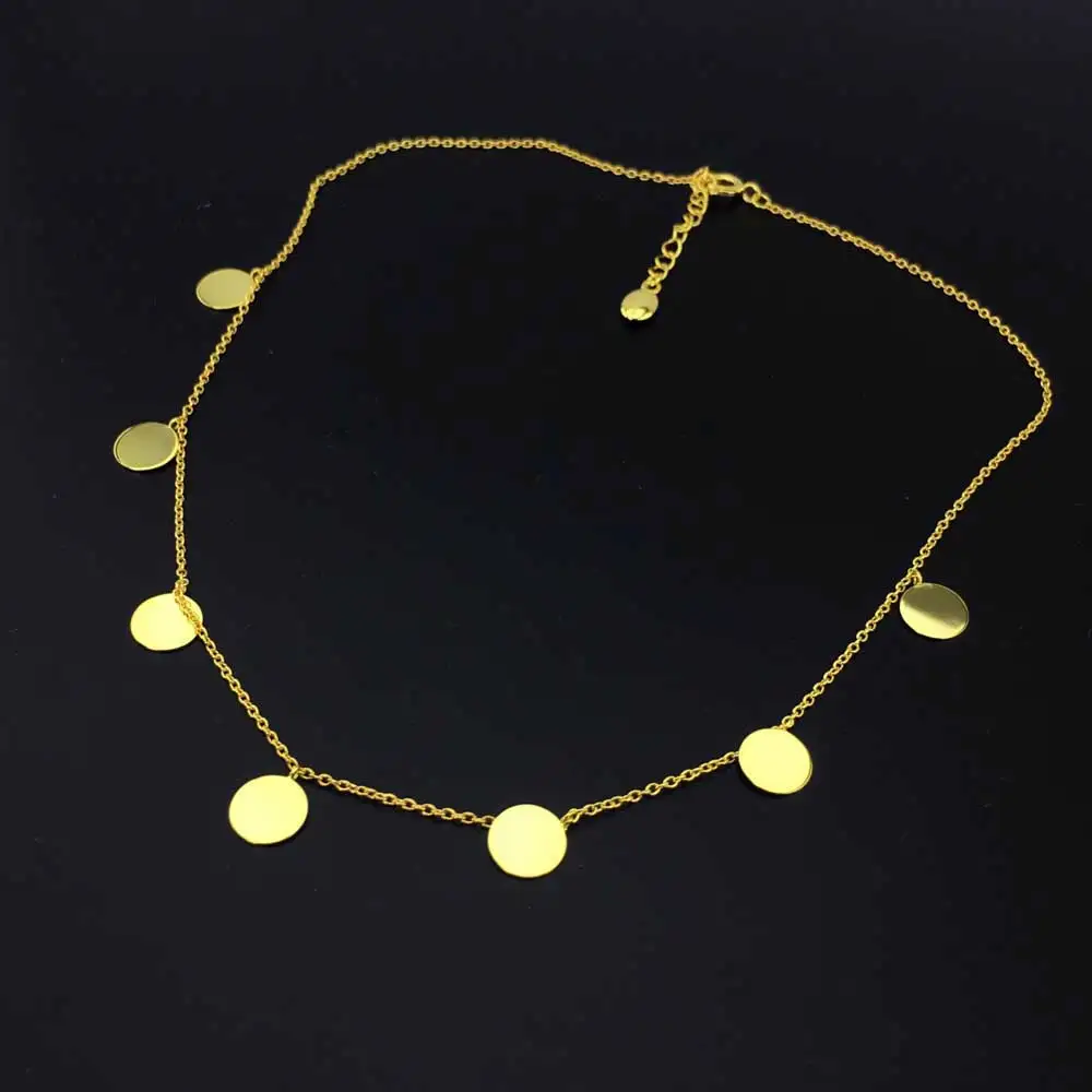 Special Offer Ffgemsリアル10 18kイエローゴールドシンプルなネックレスペンダントチョーカープレート8ミリメートルラウンドエレガントな女性パーティーウェディングギフト Discount [NEW!!] Today!