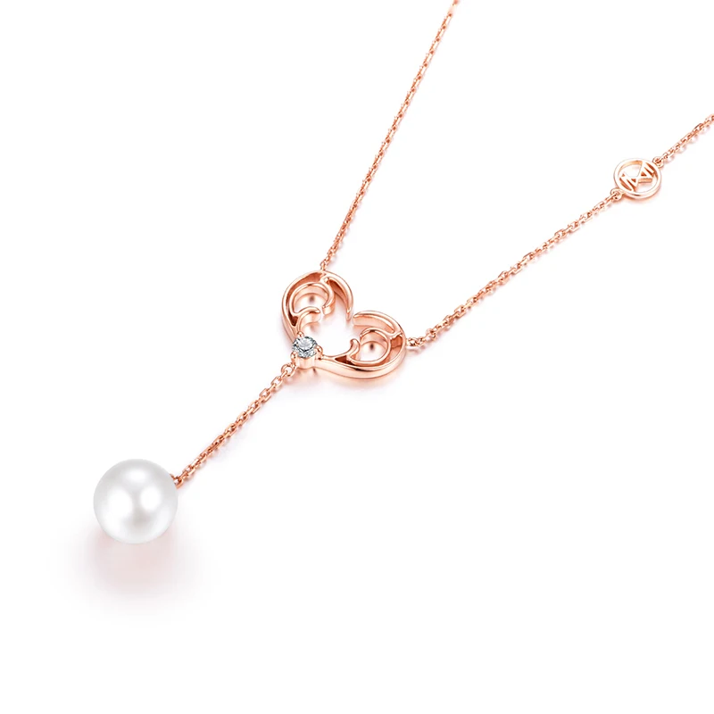 Special Offer Zocaiチョーカーはクリスマストナカイリアル18 Kローズゴールドリアル0.07 Ctダイヤモンド淡水ホワイトパールネックレスJBC00023 Discount [NEW!!] Today!
