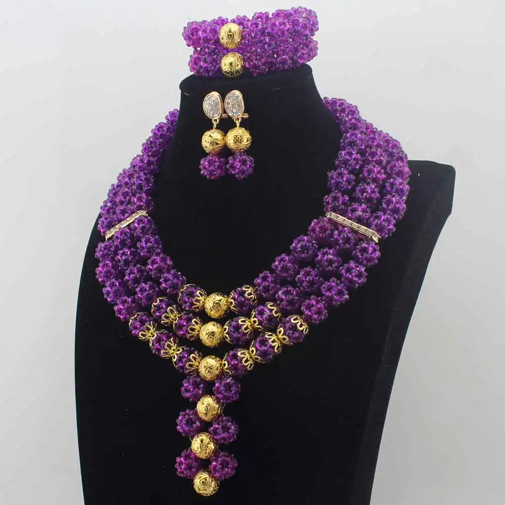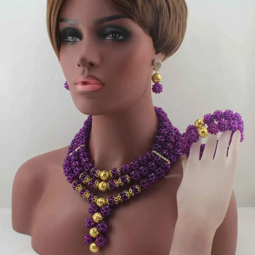 Special Offer 新しい最新ナイジェリアパーティービーズchokerネックレス女性声明パープルクリスタルアフリカのビーズジュエリーセット送料無料w14017 Discount [NEW!!] Today!