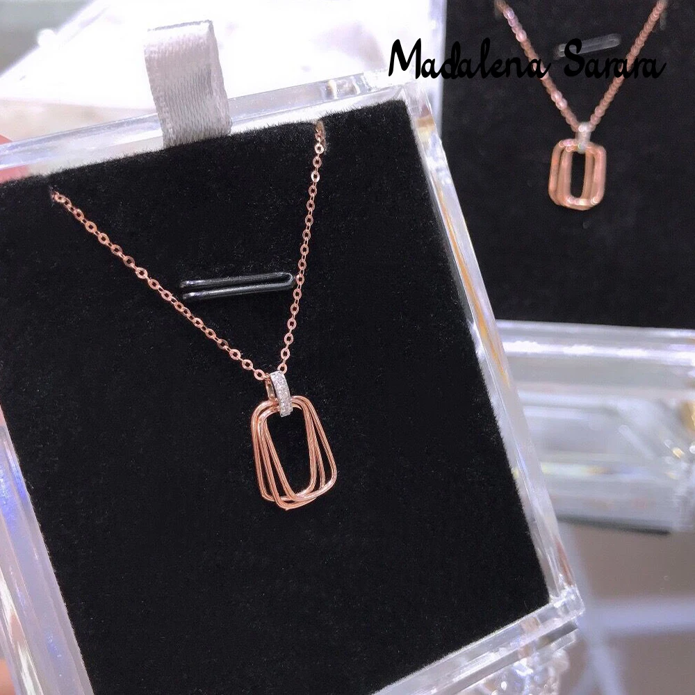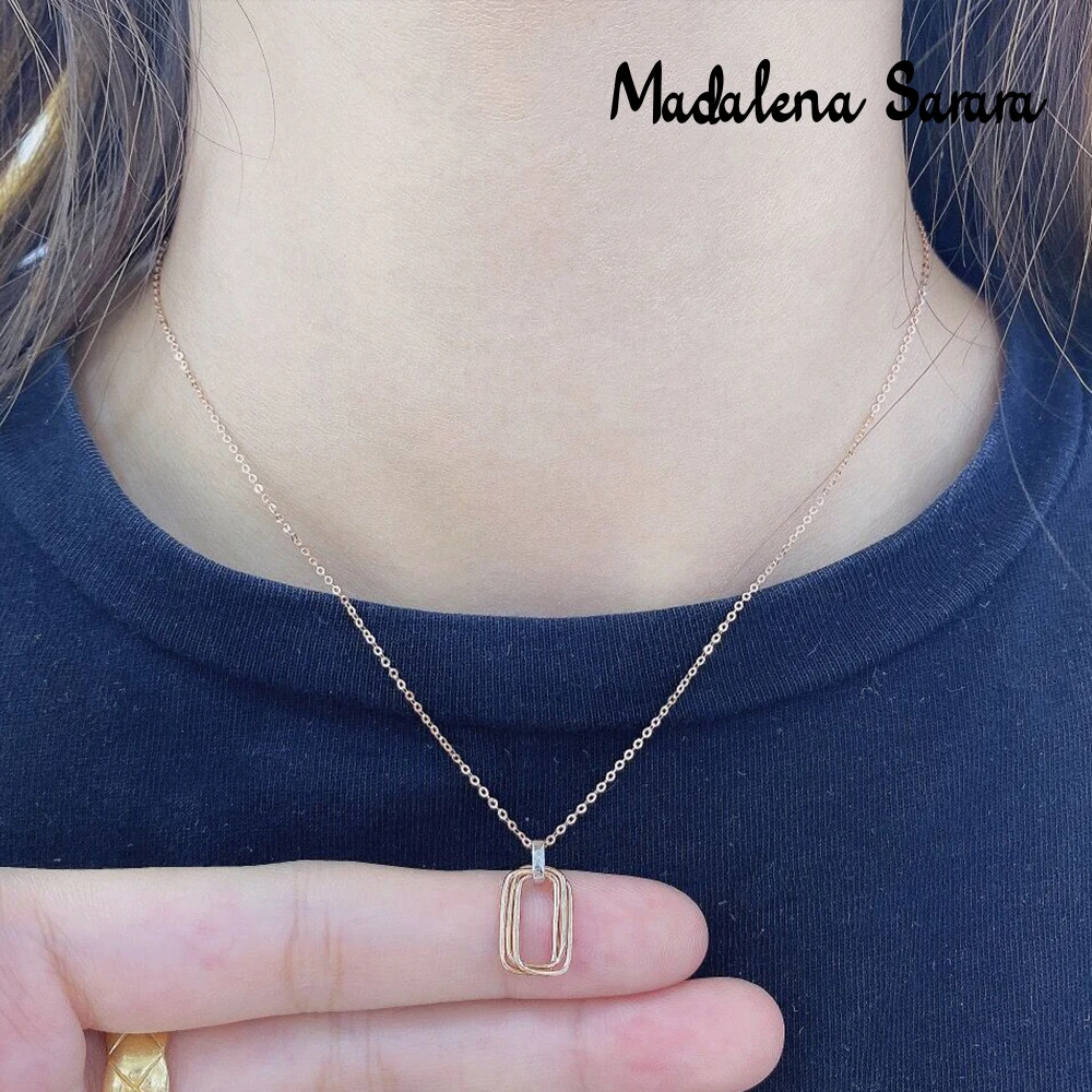Special Offer Madalena Sarara純粋な18 18kゴールド長方形ペンダント女性ネックレスAu750ローズゴールド純金チェーンネックレス韓国スタイル Discount (49%OFF) Today!