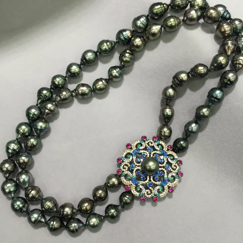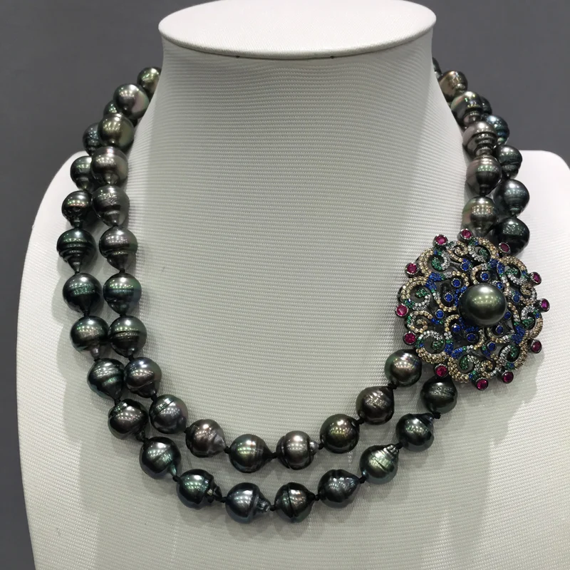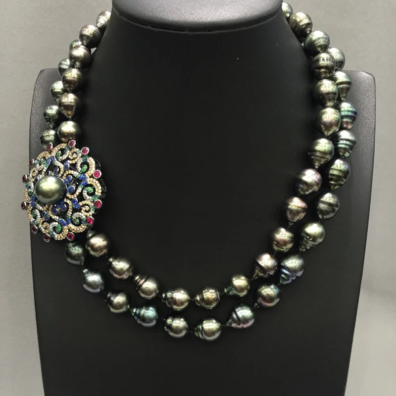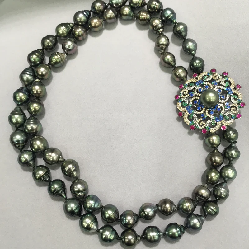 Special Offer 10〜11ミリメートルナチュラルtahitial真珠ネックレス二層で925スターリングシルバージュエリーロック細かい女性ジュエリー Discount (25%OFF) Today!