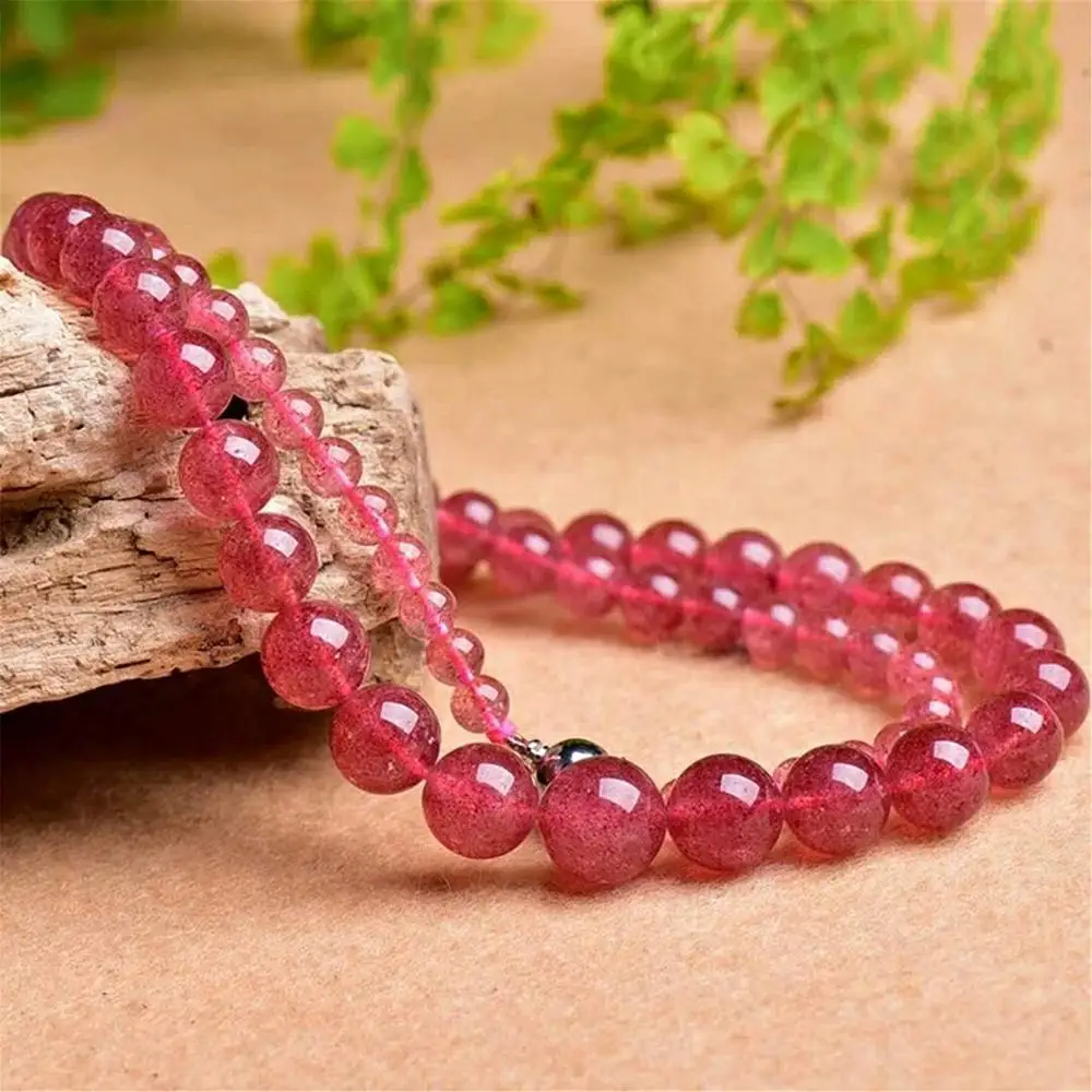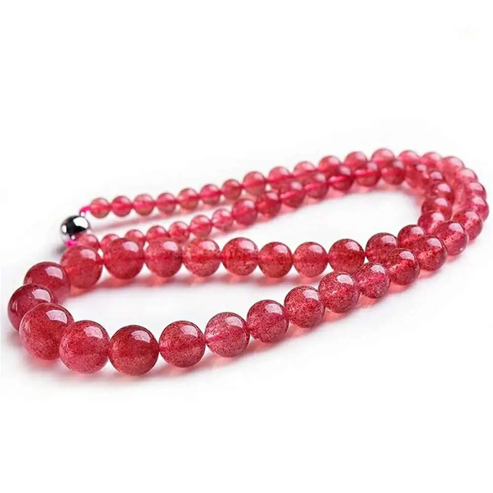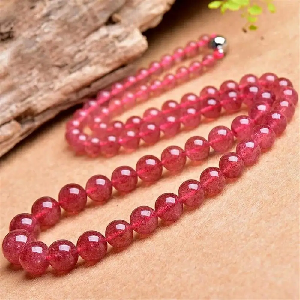 Special Offer トップ品質天然氷ストロベリークォーツネックレス女性男性ギフト用 6-13 ミリメートルラウンドビーズクリスタルチョーカーファッションネックレス AAAAA Discount (51%OFF) Today!