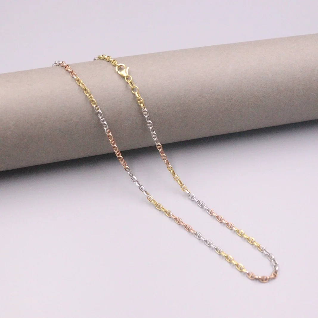 Special Offer Au750リアル18 14kマルチトーンゴールドチェーンneckalce女性の女性2.8ミリメートル色アンカーリンクチョーカーゴールドネックレス16.9 ''ギフト Discount [NEW!!] Today!