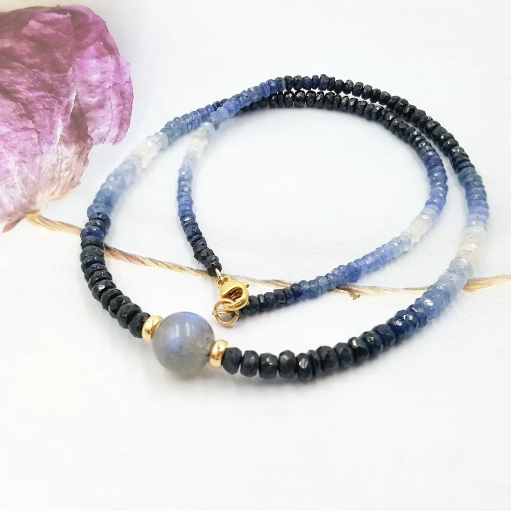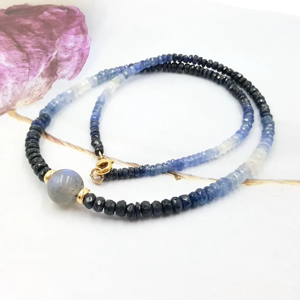 Special Offer Lii智ブルーサファイアラブラドライトネックレス天然宝石スパークリングビーズ9 18k Gf/18 K14イエローゴールドクラスプネックレス繊細なジュエリー Discount (51%OFF) Today!